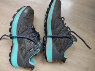 Zapatillas de senderismo The North Face con tecnología Gore-Tex. - Color gris y turquesa. - Suela de goma para un buen agarre. - Cierre con cordones. -Talla 37 pero es para talla 36 Usado 6 o 7 veces.Se le han quedado pequeñas a mi hija pero están perfectas