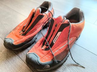 Zapatillas de montaña The North Face. - Estado con desperfectos debido al paso del tiempo. (Reparables por algun especialista en el oficio) - Valoradas en mas de 150€, de hay su precio actual. - Modelo con cremallera y cordones. - Muy comodas. - Buen estado del interior y suela.