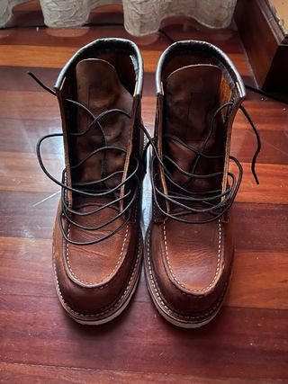 Botas Red Wing originals modelo 8146 Roughneck Moc Toe en color marrón. Un clásico para el día a día. Tengo un 46 y va sobrado. Vendo por cambio de modelo. Como vereis en las fotos estan impecables. - Diseño Moc Toe. - Piel Briar Oil Slick. - Suela de goma resistente.