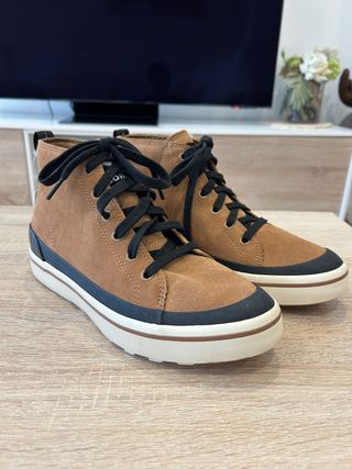 Botas de media caña de la marca Sorel. - Exterior de ante en color marrón. - Detalle de puntera y talón en negro. - Cordones negros. - Suela de goma blanca con detalles marrones. - tirne un error en la etiqueta interior. marca 40 de talla pero es un 41.5 - pvp original 150€