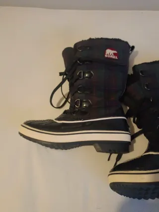 Botas de invierno Sorel con un diseño a cuadros llamativo. - Parte superior de tela a cuadros. - Forro interior de pelo sintético. - Cierre de cordones y ojales metálicos. - Suela de goma resistente. - Wáterproff. - Usadas estás navidades en Tromso a -20 grados.
