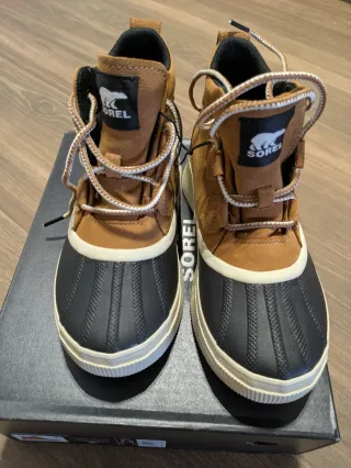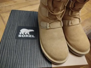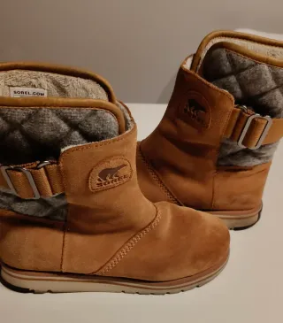 Botas de nieve Sorel, perfectas para el frío y la nieve. Diseñadas para mantener tus pies calientes y secos. - Exterior de ante y material impermeable. - Forro interior cálido. - Suela de goma antideslizante. - Cierre de cordones para un ajuste seguro. Puestas en 3 ocasiones