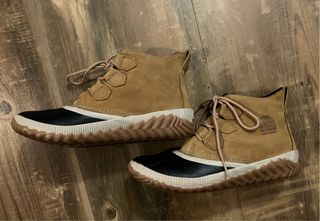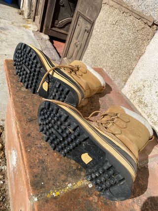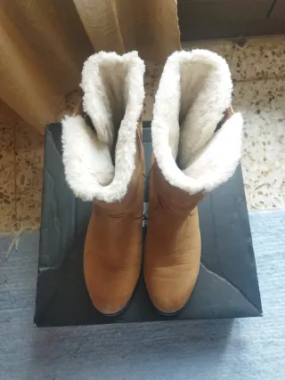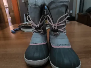 Botas de invierno calidad Sorel para impermeabilidad y comodidad. Combinan tonos marrones y grises, perfectas para mantener los pies calientes. Ideal para nieve y climas frios. Solo dos puestas ya que elegí un poco justo. - Exterior de ante, piel sintética - Forro interior suave y acolchado. - Detalle de correa ajustable con hebilla. - Suela de goma antideslizante.