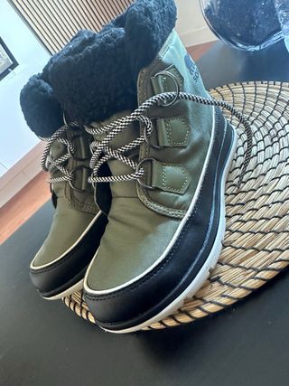 Botas Sorel Madson II Chukkas WP talla 37, en color verde oliva y negro. Ideales para el invierno. - Diseño de caña baja. - Cordones decorativos. - Forro de borreguillo. - Suela resistente.