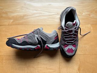 Zapatillas de montaña y trekking impermeables de mujer. Son marca quechua. Suela de goma con buena agarre. Negras grises y rosas. Hago descuento en lotes.