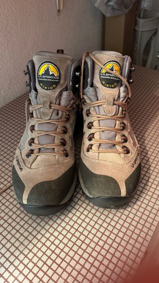 Botas de trekking La Sportiva en tonos beige y gris. Perfectas para tus aventuras al aire libre. - Diseño robusto y duradero. - Cierre con cordones. - Logo de La Sportiva en la lengüeta.