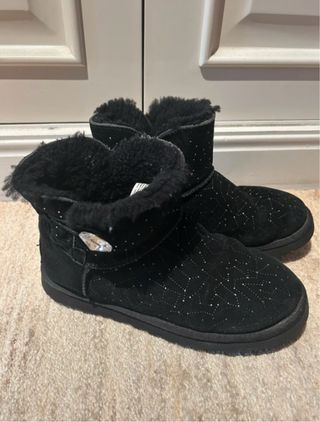 Botas UGG originales en color negro, talla 38. Presentan un diseño con pequeños adornos brillantes y un detalle de botón con pedrería( serie swarosvki con cristales ) modelo constelaciones . Fue una serie limitada. - Adornos brillantes por toda la bota. - Detalle de botón con pedrería en el lateral. - Forro interior de pelo.