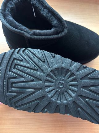 Botas de caña baja UGG Classic Mini en color negro. Perfectas para el día a día. - Forro interior de pelo sintético. - Suela de goma antideslizante. la talla es 39 pero la talla real es 38