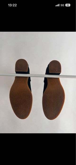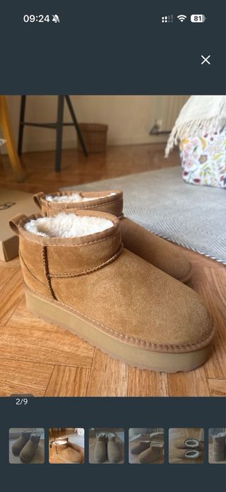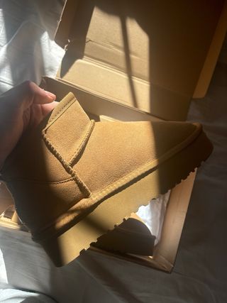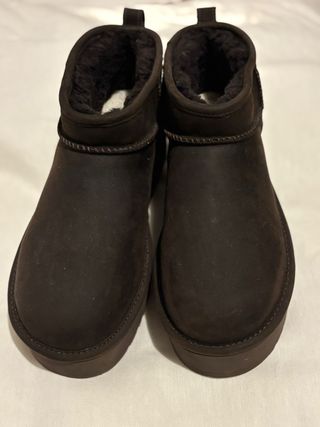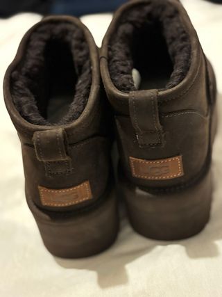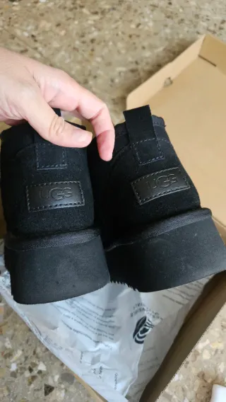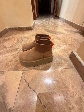 Botas de la marca UGG con un diseño moderno y suela de plataforma. - Material exterior de ante. - Detalle de tira en la parte trasera. - Suela gruesa y cómoda. Me las he puesto 4 veces, lo que en un zapato tiene una mancha por eso las vendo por 50 euros.