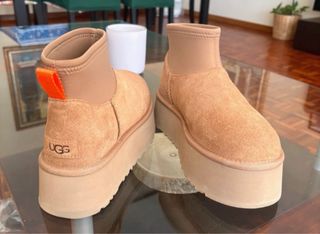 Botas UGG de plataforma en color beige y marrón. Son nuevas y están listas para estrenar. - Detalle de tira naranja en la parte trasera. - Logo de UGG en el lateral. - Suela gruesa y cómoda.