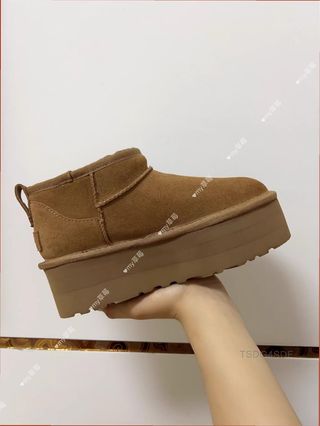 Botas de la marca UGG con suela alta, perfectas para un estilo casual. - Exterior de ante. - Forro interior de borreguito. - Suela plataforma gruesa.
