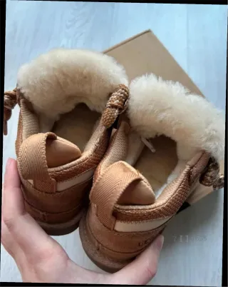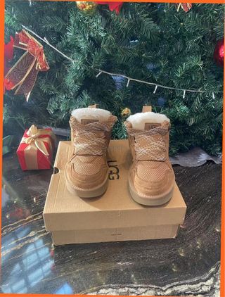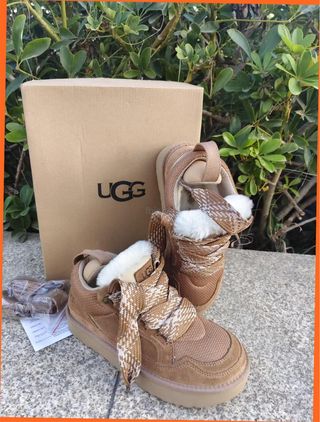 Botas UGG Mel de la nueva colección. - Diseño moderno y cómodo. - Acabado en ante y tejido. - Forro interior de pelo. - Cordones con estampado. - Suela de goma resistente.