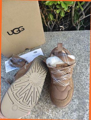 Botas UGG Lowmel en color marrón, talla EU 37. Son nuevas y originales. - Diseño tipo botín. - Forro interior de pelo. - Cordones con diseño. - Tirador trasero.