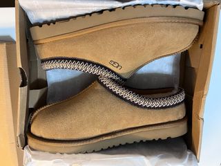 Zapatillas UGG Tasman unisex en color beige y marrón.Aunque son talla 45 tallan un poco mas pequeño como si fuesen un 44/43 y 2/3 - Talla 44/45. - Diseño tipo mule. - Ribete decorativo. - Interior forrado.