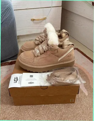 Zapatillas bajas UGG Lowmel en color arena. Perfectas para un estilo casual y cómodo. - Detalle de cuadros en los cordones. - Forro interior de pelo suave. - Suela de goma resistente.