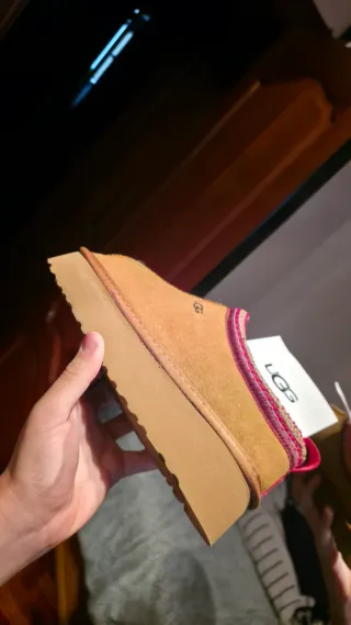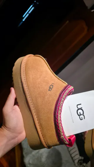 Zapatillas Ugg de plataforma, sin estrenar. - Exterior de ante. - Detalle de ribete trenzado en la apertura. - Suela de plataforma gruesa.
