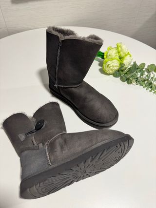 Botas de la marca UGG en color gris, talla 40. - Diseño clásico y cómodo. - Interior forrado de pelo suave. - Detalle de botón lateral. - Buen estado, envío rápido y seguro.