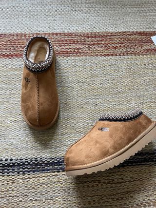 Zapatillas UGG Tasman en color beige, talla 39. Están nuevas, sin usar. - Diseño tipo mule. - Detalle de zigzag en el cuello. - Suela gruesa y cómoda.