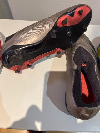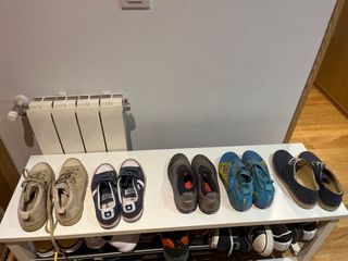 Lote de zapatos variados para diferentes ocasiones. - Zapatillas deportivas Adidas para fútbol.y otro Decatlón, estilo botin sin cordones cómodos para entrenar - Botas de estilo casual UGG, forrada de borreguito, calentitas - Zapatillas Converse vaquero punta y suela blanca con velcro - Zapato de vestir elegante comunión o ocasiones especiales con suela y cordones beige, cosidos a mano, hecho en España Cada uno en 10 euros, el lote en 30 euros