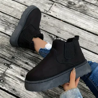 Botas de caña baja con plataforma. - Material exterior de ante. - Suela de goma. - Diseño moderno y cómodo.