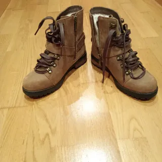 Botas de estilo casual con plataforma. - Exterior de ante. - Forro interior de pelo. - Suela de goma gruesa. Usadas en contadas ocasiones