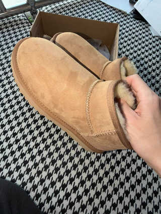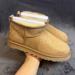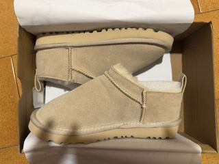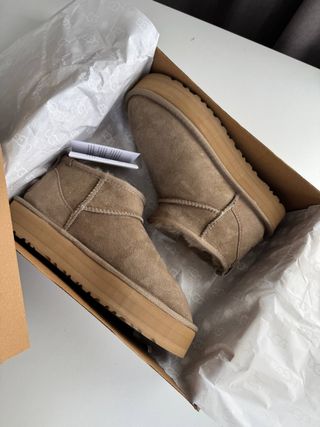 Botas de corte bajo estilo UGG Classic Ultra Mini. Perfectas para el día a día. - Exterior de ante. - Forro de lana de oveja y piel de oveja. - Suela de EVA. - Tirador trasero.