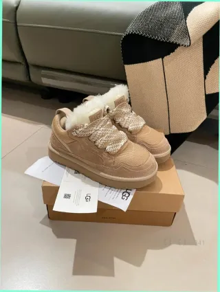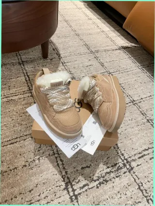 Zapatillas UGG Lowmel en color beige arena. Un calzado cómodo y moderno. - Exterior de ante. - Forro de pelo. - Suela de goma. - Cierre de cordones.