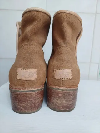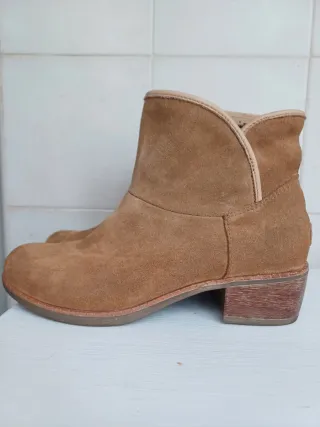 Botas de media caña de la marca UGG. Usadas y con alguna mancha pero aún les queda mucho uso - Material exterior de ante. - Detalle de botón, pero falta uno. - Interior de pelo. - Calentitas y comodas
