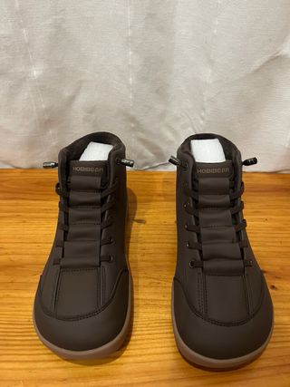 Botas de invierno Hobbear de color marrón. Están nuevas sin estrenar. Se venden porque la talla no era la esperada y es muy complicado devolverlas. Son un 39 pero es una talla grande (yo tengo un 38.5 y me van grandes) Por lo que puede ser perfecta para personas de 39-39.5 incluso 40) - Diseño tipo botín. - Piel vegana. - Suela de caucho natural - Cierre con cordones.