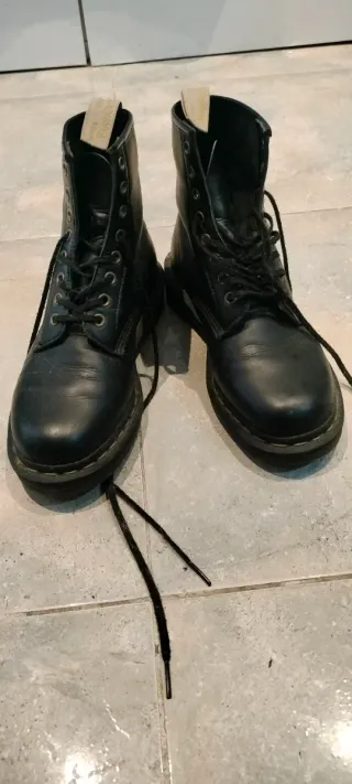 Botas de piel vegana de color negro, modelo 1460 de Dr. Martens. Talla 37 de mujer. Precio original: 200€ Usadas pero en buen estado y bien cuidadas. Con cordones de satén.