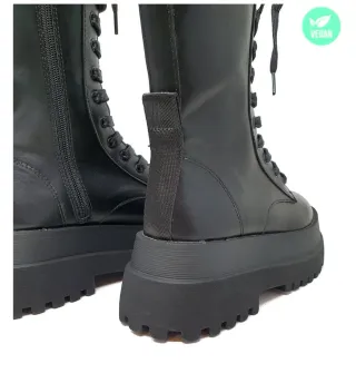 Botas veganas de estilo militar, en perfecto estado. - Cierre de cordones. - Cremallera lateral. - Suela de goma gruesa.