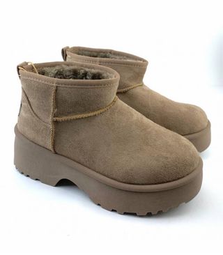 Botas de estilo australiano con un diseño moderno y cómodo. - Exterior de antelina. - Forro interior de pelo sintético. - Suela gruesa y resistente. - Material vegano. PRECIO EN TIENA FISICA: 44,99€ NUEVO A ESTRENAR CON SU CAJA Y ETIQUETAS DE FABRICA LIQUIDACION STOCK ALMACENES.