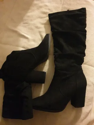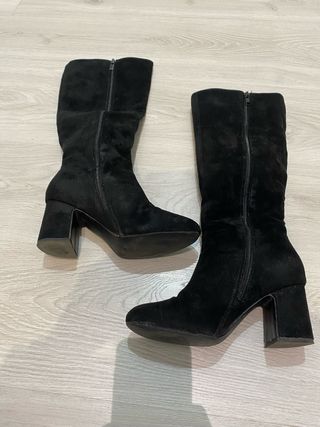 Botas altas de estilo slouchy, perfectas para completar cualquier look. - Material: Ante sintético. - Tacón grueso y cuadrado. - Cremallera lateral para facilitar el calce.