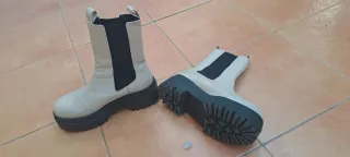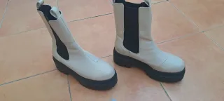 Botas de estilo chelsea en color beige. Perfectas para complementar cualquier atuendo. - Diseño con elásticos laterales. - Suela gruesa y robusta. - Caña media.