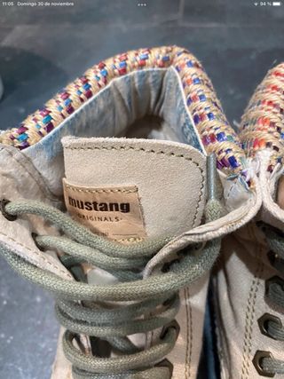 Botas de caña media con un diseño moderno y llamativo. - Parte superior en lona beige. - Detalle de cuello en tejido multicolor con estampado geométrico. - Cordones a tono. - Suela de goma con buen agarre.