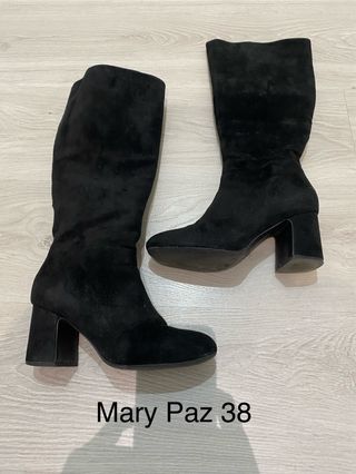 Botas altas de ante con un diseño moderno y elegante. - Material: Ante - Color: Negro - Detalle de hebilla en la parte superior - Cremallera lateral para facilitar el acceso - Suela gruesa y resistente PRECIO NO NEGOCIABLE