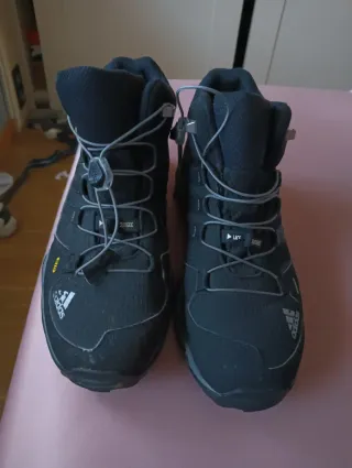 Botas de senderismo Adidas Terrex con tecnología Gore-Tex. - Color negro y gris. - Cierre de cordones. - Diseño de caña media.