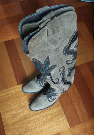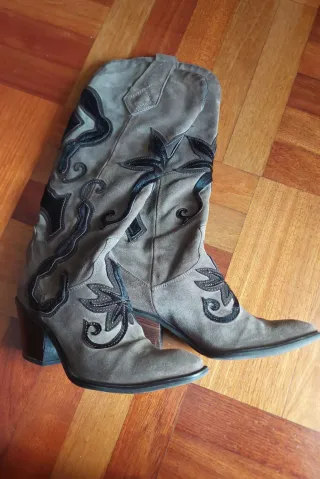 Botas camperas de mujer de la marca Dakota Boots, nuevas a estrenar. - Material exterior de ante. - Diseño estilo cowboy. - Detalle de costuras decorativas.