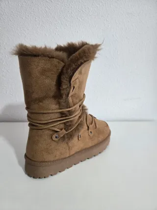 Botas de peluche con un diseño acogedor y cálido. Versátil formas diferentes de colocar Mas numeros disponibles preguntar sin compromiso Medidas de plantilla interior 23, 4cm - Exterior de ante. - Forro interior de pelo sintético. - Cierre con cordones. - Suela de goma antideslizante.