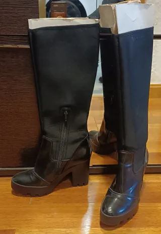 Botas tacón negras talla 37 (un solo uso)