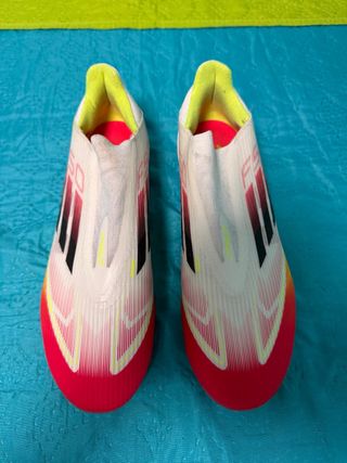 Botas de fútbol Adidas F50 ll . Son gama media, las he usado una semana y las vendo porque me quedan pequeñas. - Diseño en blanco y rosa. - Detalles en amarillo y negro.