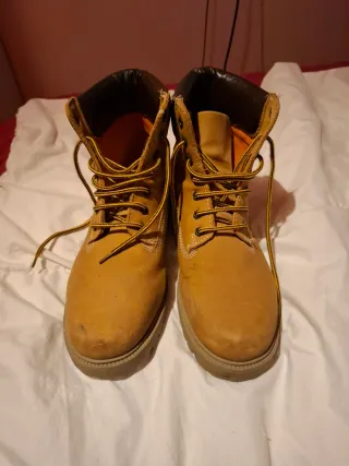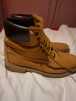 Botas de estilo Panama Jack en tonos beige y marrón. Perfectas para un look casual y resistente. - Diseño clásico de bota. - Cordones amarillos. - Suela de goma. - Interior forrado. - habria que limpiarlas y tiene unos pequeños enganches k le hizo mi gato pero k casi ni se aprecia.