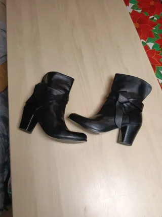 Botas altas de cuero sintético en perfecto estado. - Diseño elegante y moderno. - Cremallera lateral para facilitar su uso. - Tacón grueso para mayor comodidad y estabilidad.