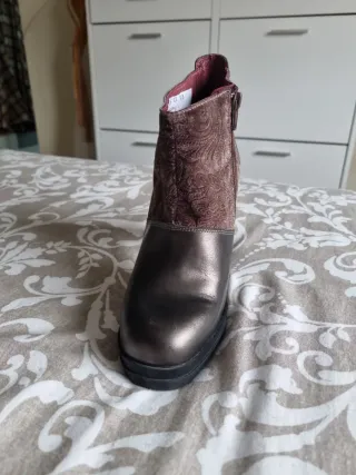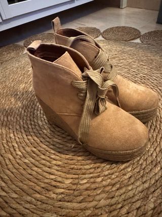 Botines de estilo casual con cuña. - Material exterior tipo ante. - Cierre
