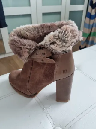 Botas de ante con forro de borreguito. - Tacón alto y plataforma. - Detalle de vuelta en el cuello. - Diseño elegante y cálido.