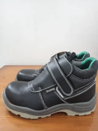 Botas de seguridad de cuero sintético con cierre de velcro. Marca: ofma - Cierre de velcro ajustable. - Puntera reforzada. - Suela de goma antideslizante. - Diseño de caña alta. Solo usadas 1 vez,se venden porque vienen pequeñas. trabajo,empleo,calzado, Botas,bambas,seguridad, Metal,almacén,limpieza, Herramientas,jardinería, Obra,pintura,Bosch,makita