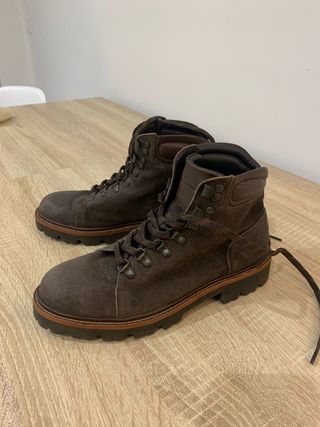 Botas de ante color marrón, talla 39. - Diseño de caña media. - Suela de goma con relieve.