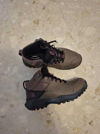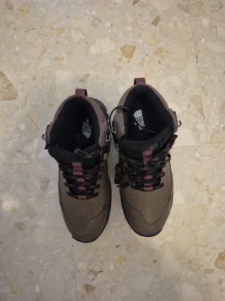 Botas de trekking The North Face en color marrón y negro. Perfectas para tus aventuras al aire libre. Usadas UNA SOLA VEZ. - Diseño robusto y duradero. - Suela con buen agarre. - Detalle del logo en el lateral y la suela. - Impermeables