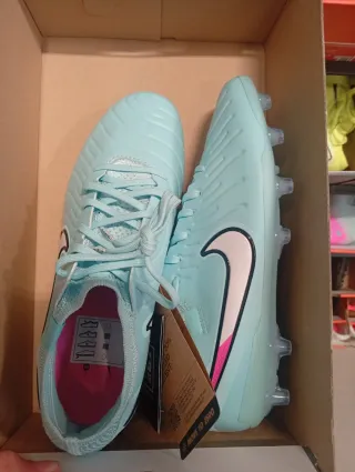 Botas de fútbol Nike Tiempo Legend 10 Elite en color azul verdoso y detalles en rosa. Almacén en liquidación, de ahí el precio bajo - Diseño con textura en el empeine. - Swoosh de Nike en el lateral. - Tacos para césped natural o artificial.