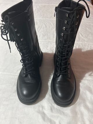 Botas de plataforma con cordones. - Diseño moderno y atrevido. - Suela gruesa y resistente. - Cierre de cordones para un ajuste perfecto. - Usado 1 vez